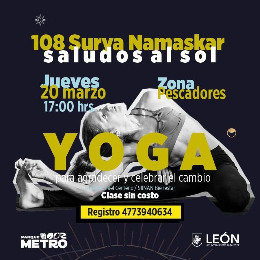 La primera actividad denominada 108 Surya Namaskar – Saludos al Sol, será el jueves 20 de marzo a las 5 de la tarde.