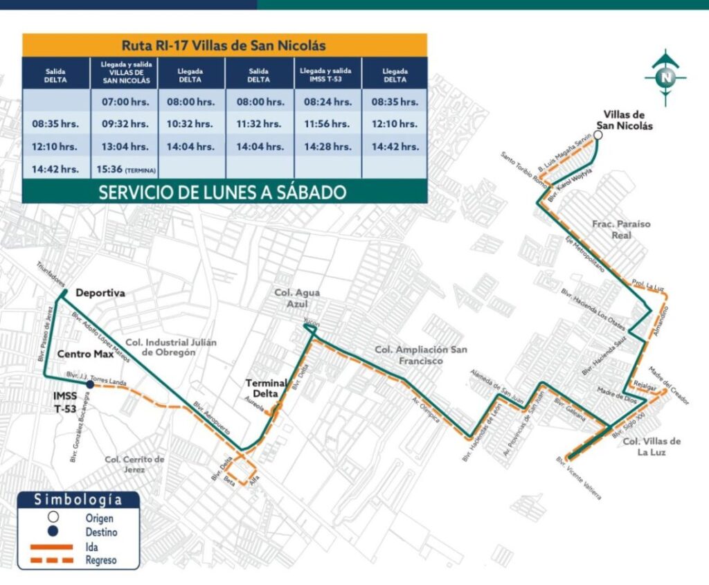 Mientras que la ruta RI-17, comenzará su recorrido en Villas de San Nicolás con destino a la Terminal de Transferencia Delta.