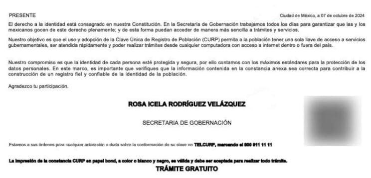 León, Guanajuato - Luego de la toma de posesión de Claudia Sheinbaum como presidenta de México, Rosa Icela Rodríguez también asumió como la nueva titular de la Secretaría de Gobernación (Segob), institución que es responsable de emitir la la Clave Única de Registro de Población (CURP).