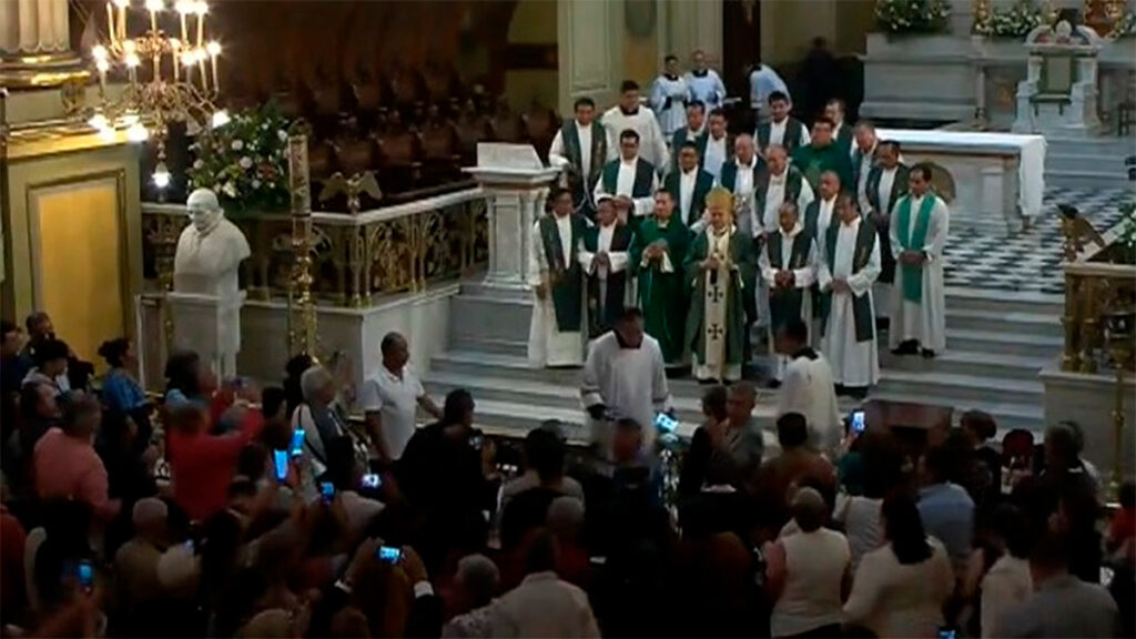 A mis hermanos presbíteros aquí presentes y los medios de comunicación y a TV4 por hacer posible a tanta gente llevarle la celebración de la eucaristía yo personalmente donde quiera que ando o incluso a veces se llena el aeropuerto o en reuniones siempre recibo el testimonio de tanta gente que recibe el mensaje a través de los medios de comunicación”, especificó.