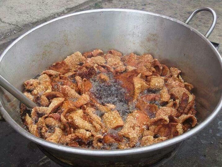 El chicharrón es la piel de cerdo oreada y frita en grandes cantidades de aceite.