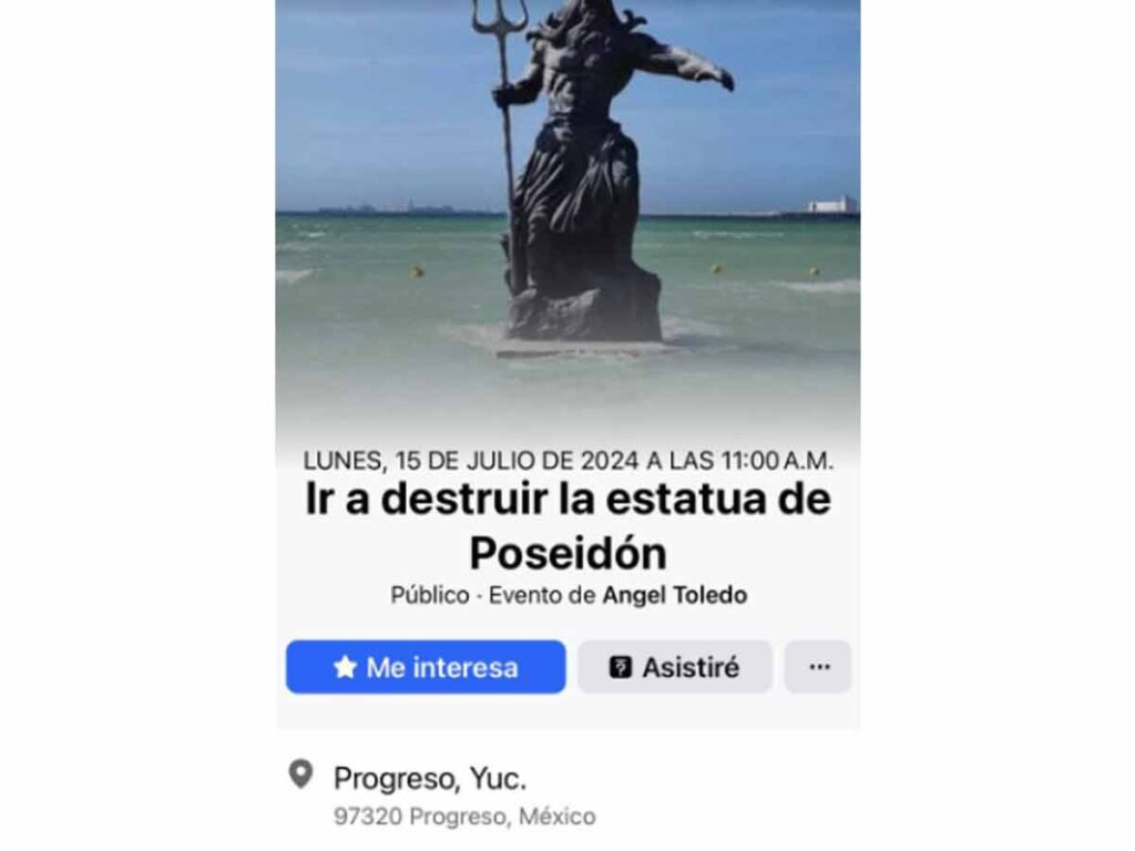 Puerto Progreso, Yucatán - Mientras crece la teoría de que la estatua de Poseidón instalada en el malecón de Puerto Progreso causó la ira del dios maya de la lluvia y las tormentas, Chaac, y ante la amenaza que supone el huracán Beryl, un grupo de ciudadanos se organizó a través de Facebook para destruir el monumento al dios griego del mar.