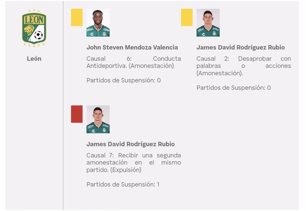 León, Guanajuato - Por insultos como “cagón” y otras palabras más, el castigo a James Rodríguez por su primera expulsión en México el pasado domingo, en el duelo entre el Club León y Monterrey, ya está resuelto. Este factor alejó a su equipo de un posible triunfo, pero que también lo limitará para pelear con todas sus armas en la Liguilla del Clausura 2025.