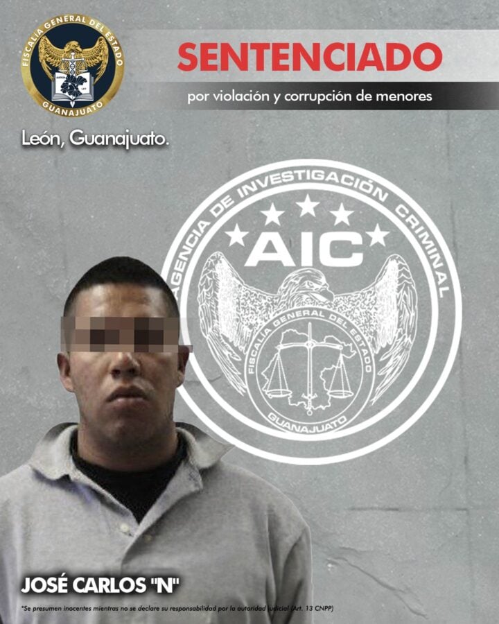 León, Guanajuato - Tras un juicio oral, la Fiscalía General del Estado (FGE) de Guanajuato logró obtener sentencia condenatoria contra José Carlos, hombre que estaba acusado de violación y corrupción de menores, y quien pasará más de 28 años en la cárcel.