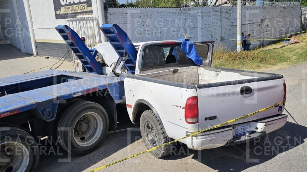 León, Guanajuato - El conductor de una camioneta perdió la vida luego de que su vehículo derrapara y lo llevara a estrellarse contra una plataforma de un transporte de carga que estaba a un costado de la carretera León-Silao.