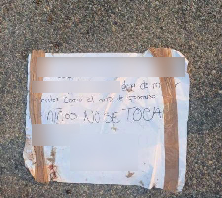 El mensaje apareció a un costado de un cadáver embolsado en la colonia Paso Nuevo del municipio de Comalcalco. En el texto se puede leer: "Deja de matar inocentes como el niño de Paraíso. Los niños no se tocan".