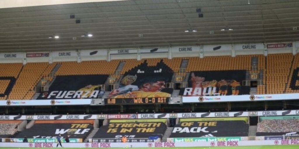 Aunque Raúl Jiménez ha estado alejado de las canchas debido a una fractura de cráneo que sufrió hace unas semanas en el encuentro contra Arsenal, los aficionados del Wolverhampton no han dejado de alentarlo y este sábado mostraron su apoyo hacia el ariete mexicano a través de una enorme pancarta que instalaron en el Molineux Stadium durante el partido contra el Aston Villa.