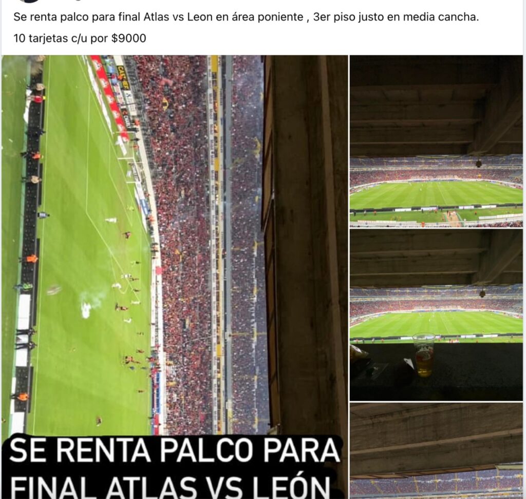 También los dueños de palcos están aprovechando la alta demanda de los aficionados que buscan un lugar para la noche del domingo en el estadio Jalisco.
