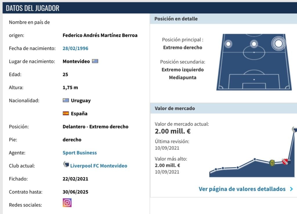 Fede Martínez marcó nueve goles en la última temporada con el Liverpool.