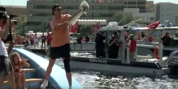 Tom Brady, quarterback de los Buccaneers de Tampa Bay, se viralizó por lanzar el trofeo Vince Lombardi sobre el río Hillsborough, durante las celebraciones por la victoria del Super Bowl LV.