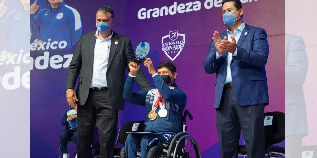 En los Juegos Olímpicos y Paralímpicos en Tokio 2020, Guanajuato estuvo representado por cuatro deportistas convencionales y cuatro paralímpicos, los cuales obtuvieron el resultado histórico de cinco medallas: 1 de oro y 3 bronces en paranatación y una medalla de bronce más correspondiente a Roberto Alvarado, integrante de la Selección Mexicana de Futbol que se quedó con la tercera posición, por lo que el salmantino sumó una presea más.Este lunes se entregaron los reconocimientos en una ceremonia realizada en el Auditorio del Estado en Guanajuato capital, en la que estuvieron presentes deportistas, familiares, dirigentes de asociaciones deportivas y entrenadores así como director general de Code y el presidente del Consejo Directivo del mismo, Marco Heroldo Gaxiola Romo y J. Concepción Enríquez Fernández, respectivamente.Marco Gaxiola señaló que los “buenos resultados acarrean nuevos compromisos” por lo que señaló que desde Code se continuará el trabajo por escalar nuevos peldaños en el top ten del deporte en México.Para ello, dijo, se cuenta con 120 atletas a los que se dará seguimiento en su desarrollo para que continúen colocando en alto el nombre de Guanajuato en los medalleros nacionales e internacionales, pues el objetivo es que lleguen a los más altos niveles del deporte.En la ceremonia, los reconocimientos fueron recibidos de manos de las autoridades por los medallistas paralímpicos Jesús Hernández (1 oro y 2 bronces), Ángel Camacho (1 bronce) así como por los hermanos Juan José y Raúl Gutiérrez Bermúdez, también acudieron la corredora Laura Galván y la clavadista Arantxa Chávez.Entre los deportistas de juegos nacionales Conade galardonados estuvieron la corredora Sabrina Salcedo, el tirador José Manuel Serrano Álvarez, la patinadora Mariana Fernanda Almaguer; la entrenadora de patinaje Susana Castilla y el presidente de la asociación de natación, Mario López Arteaga.MEJZ*