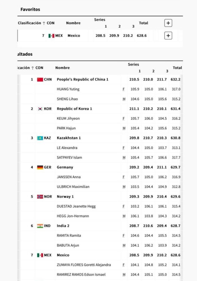 Este sábado compitió por primera vez dentro de la prueba por equipos junto a Edson Ismael Ramírez, finalizando en la séptima posición de 10 metros con rifle.