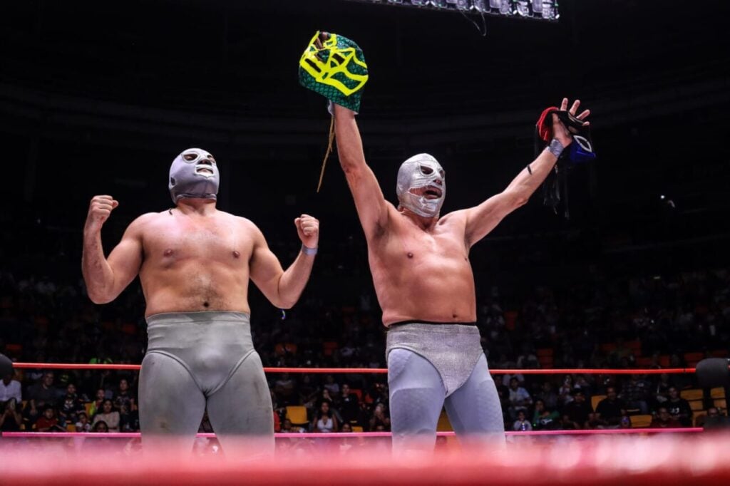 El plateado formó tercia junto al Santo Jr. y LA Park, quienes se enfrascaron en fuertes roces con sus rivales, aunque la contienda terminó cuando el festejado de la noche rompió la máscara del primer Mosco de la Merced para sorprender a propios y extraños con la descalificación, aunque eso no importó, pues la ovación fue toda suya.