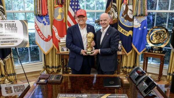 Trump estuvo acompañado en la conferencia de prensa por el presidente de la FIFA, Giovanni Infantino, el vicepresidente JD Vance y la secretaria de Seguridad Nacional Kristi Noem.