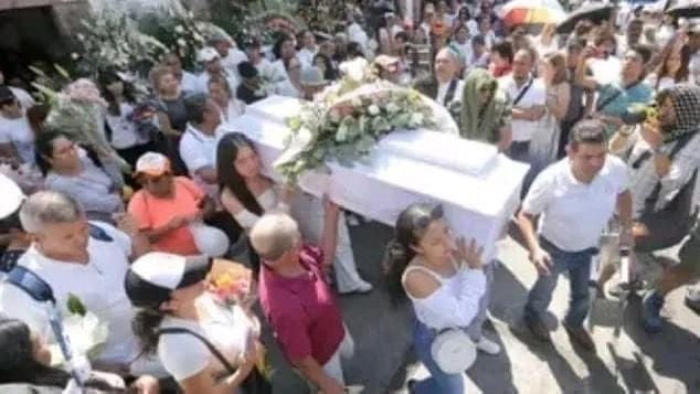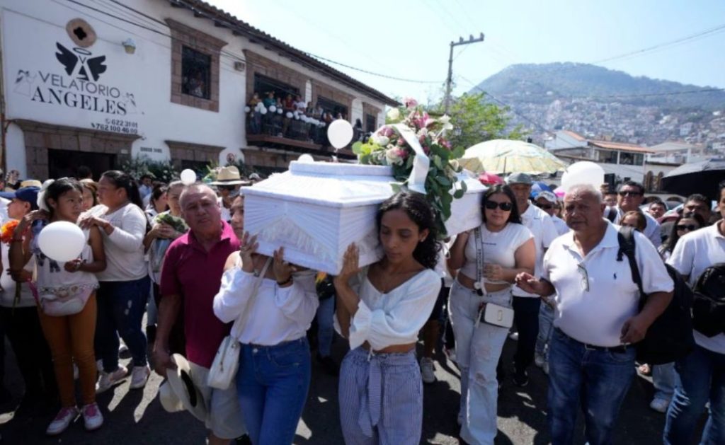 En un trayecto por las calles empedradas y empinadas de Taxco que duró tres horas, la gente aplaudía al ver el féretro blanco, tiraban globos y otros lanzaban gritos de justicia.