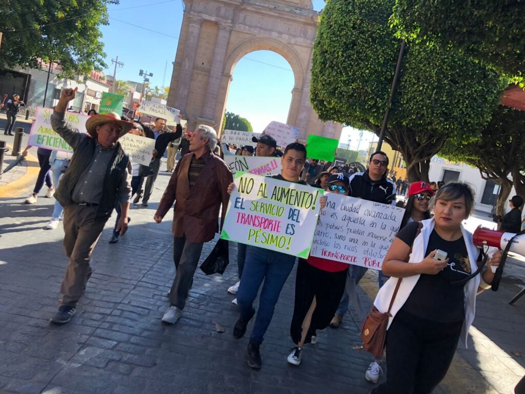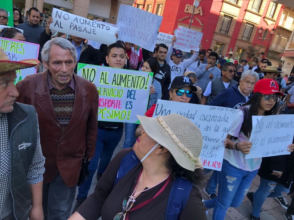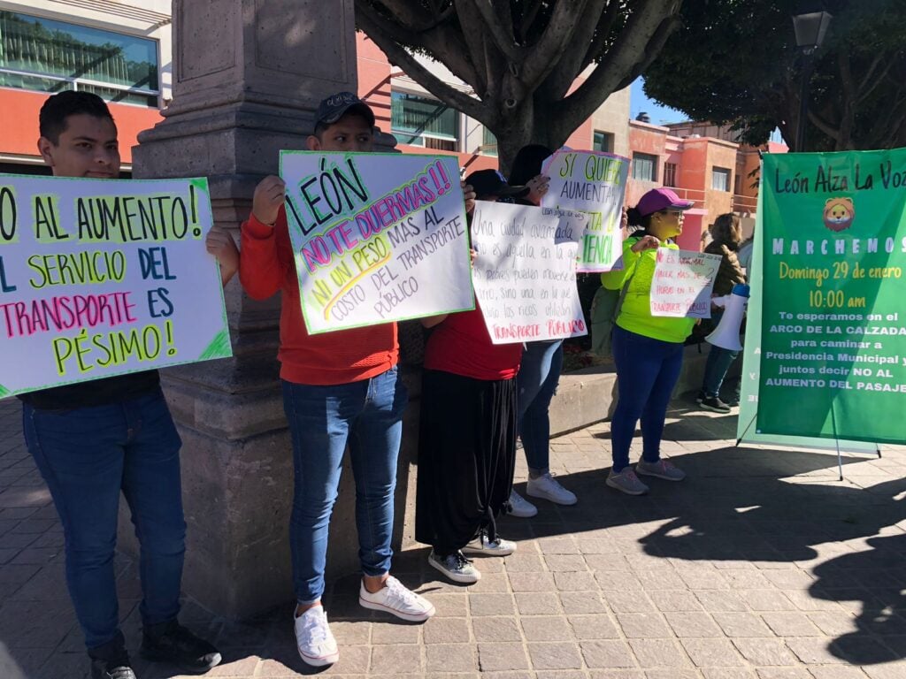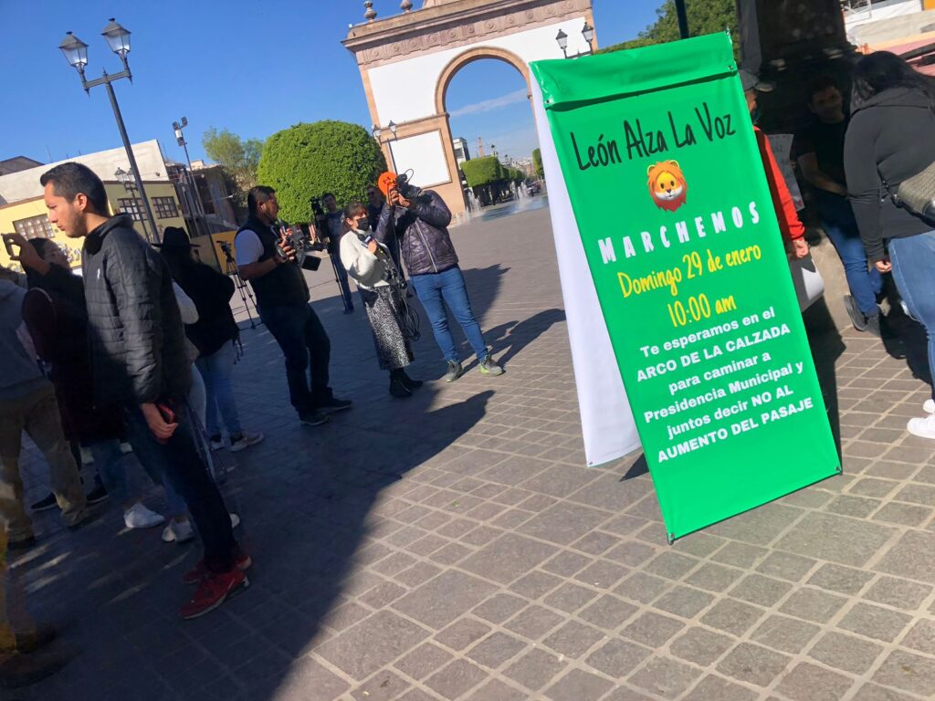 Desde el Arco de León hasta la presidencia municipal, el movimiento León Alza la Voz marchó esta mañana de domingo para manifestarse en contra el aumento tarifario que proponen los concesionarios al transporte público.