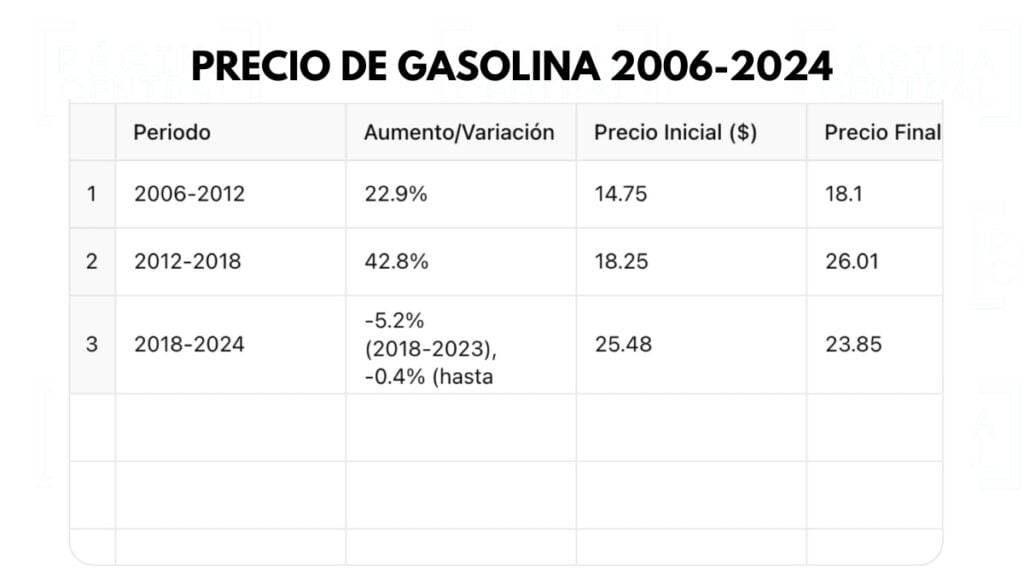 Entre 2018 y 2024, destacó, hubo una reducción acumulada del -5.2 %, con estabilidad relativa en los últimos años, vinculada a políticas gubernamentales para amortiguar el impacto del costo del combustible en la economía de los consumidores.