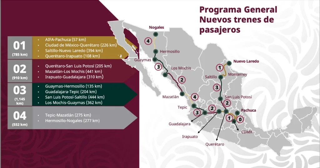Después del tren que va de México a Guadalajara, pasando por León, queremos llegar a Guadalajara hasta Nogales, en Sonora”, dijo cuando hablaba de los trenes de pasajeros.