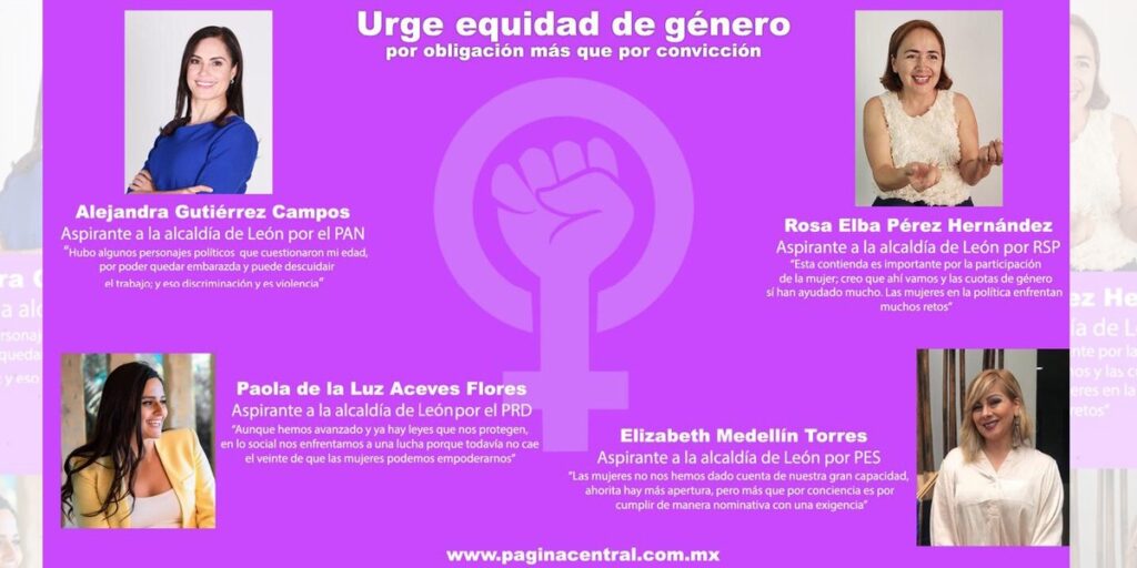 En entrevista por separado con Paola de la Luz Aceves Flores del Partido de la Revolución Democrática (PRD), Elizabeth Medellín por el Partido Encuentro Solidario (PES), Rosa Elba Pérez Hernández de Redes Sociales Progresistas (RSP) y Alejandra Gutiérrez Campos, por el Partido Acción Nacional (PAN), precisaron que hoy en día persiste la inequidad de género, incluso proveniente de las propias mujeres.