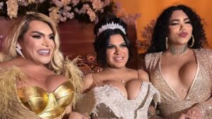 Kimberly de ‘Las perdidas’, lució un vestido marfil de corte princesa con incrustaciones de cristal y una elegante cola, diseño de Víctor y Jesse; optó por un peinado alto con una corona brillante. Ante de que iniciara la ceremonia religiosa, la influencer explicó que simplemente iba a recibir la bendición de Dios con un padre. La novia lució muy contenta en compañía de sus padres, amigos y seres queridos, de quienes recibió la bendición, y se mostró muy conmovida por recibir el apoyo de su familia.