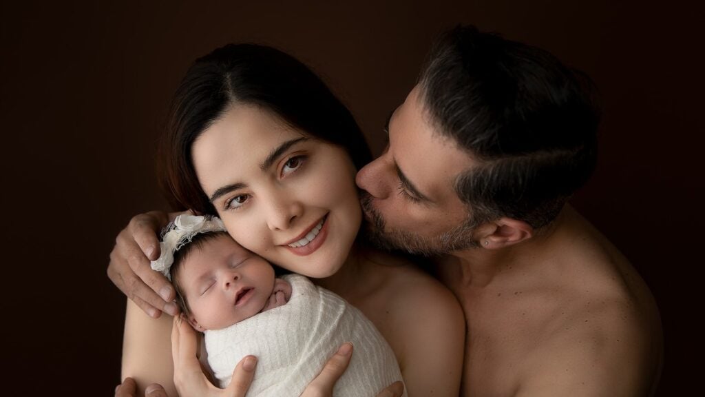 A menos de un mes de nacida, Isabella Mercandante Gamiz tuvo su primera sesión de fotos al lado de papá y mamá.