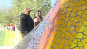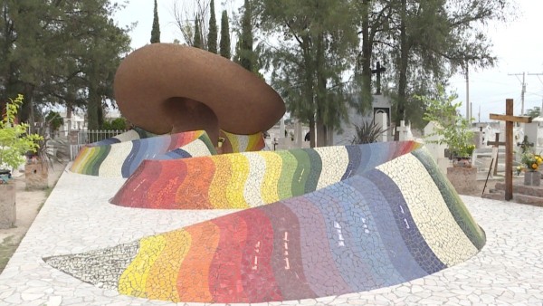 Desde Chihuahua, aprovecharon el paso por Dolores Hidalgo para llegar a conocer la tumba de José Alfredo. Así es como Arely cuenta su experiencia en el lugar: “Nosotros venimos del norte de Chihuahua mis compañeras y yo. Sí y los alrededores. Muy bonito, muy bonita la experiencia”. Un guía de turistas, explica el significado de algunos elementos del colorido mausoleo. “El sombrero, es un sombrero de cuatro piedras formando una cruz. En esa cruz tiene 113 cristales. El zarape significa la carretera que viene de Guanajuato a Dolores. En la parte más alta de Santa Rosa de Lima. Y en cada uno de los colores se vienen diferentes canciones, composiciones de José Alfredo Jiménez”. Entre el cempasúchil, las rosas y las coronas, los extranjeros disfrutan de las tradiciones mexicanas y se acercan a venerar al autor de La Vida No Vale Nada.