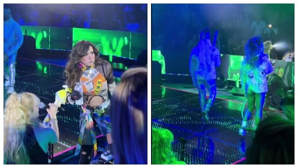 En medio de la canción “Dr. Psiquiatra”, la regia se acerca al público y le entregan una botella de agua.