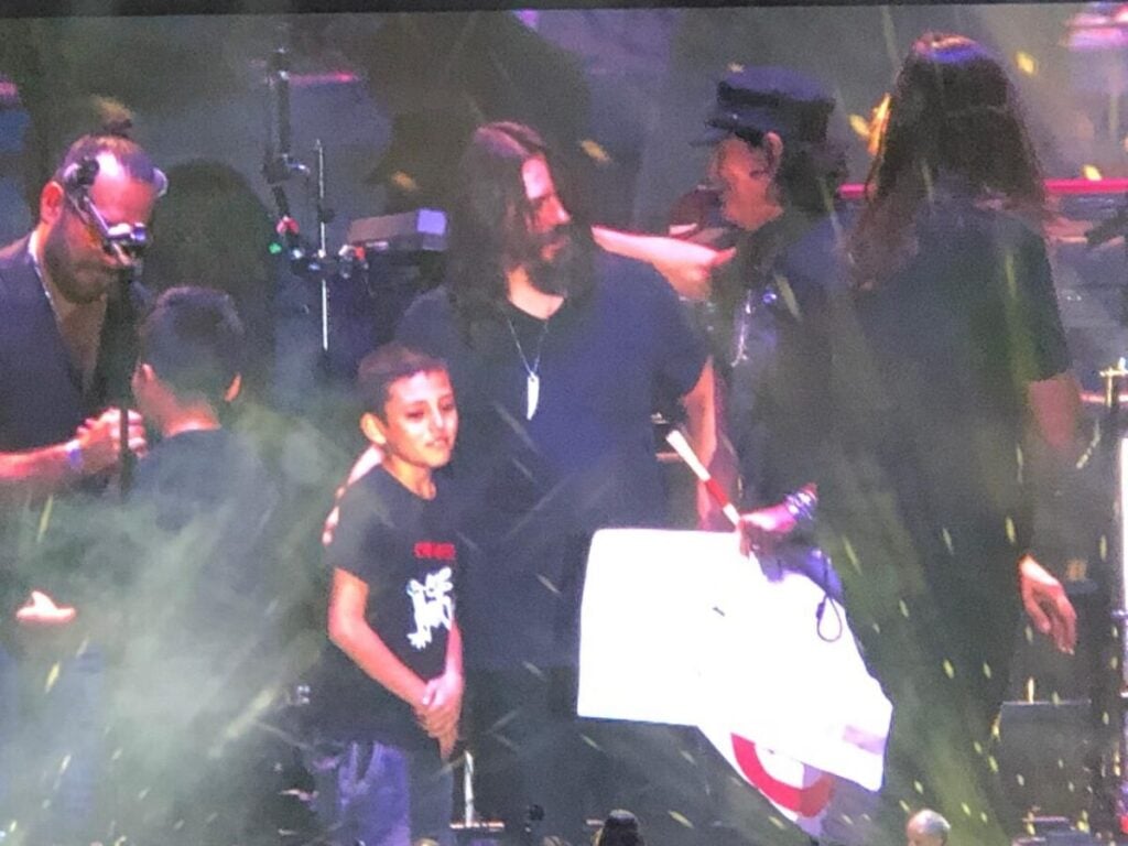 Pero Saúl y su banda también recibieron fuertes sorpresas, principalmente cuando un pequeño de aproximadamente 10 años mostró una pancarta donde expresaba que su padre había bajado del cielo para asistir al concierto.
