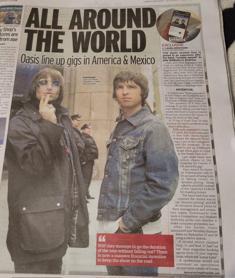 El diario reveló que los hermanos Gallagher estaban cerca de concretar un contrato multimillonario para tocar en sus conciertos más grandes de su historia en Estados Unidos y después en México y Argentina.