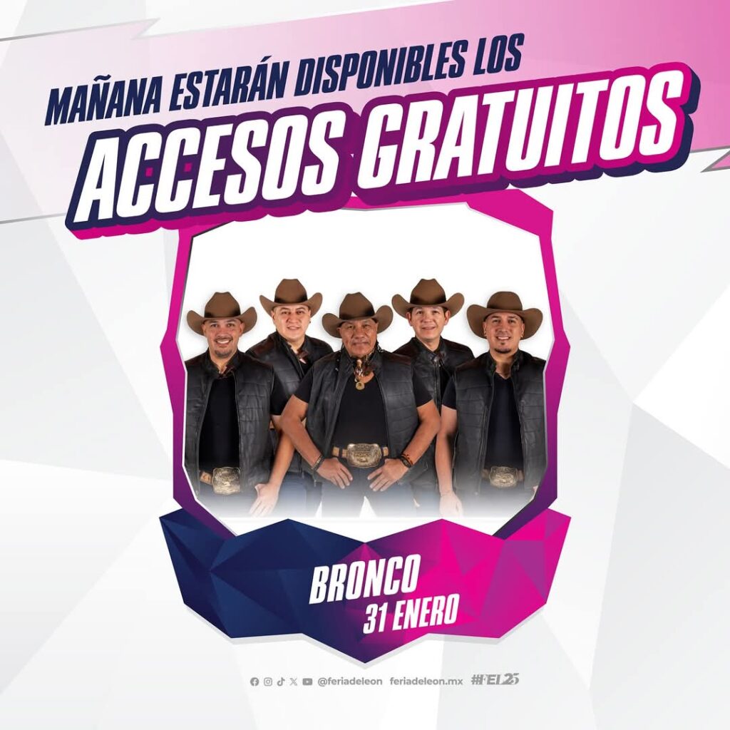 A través de redes sociales, la Feria de León informó que a partir de las 8 de la mañana las entradas para ver al grupo regiomontano Bronco con 45 años de trayectoria, estarán disponibles en su sistema zonacero.accesosferiadeleon.com, como ha sido en toda esta edición 2025.