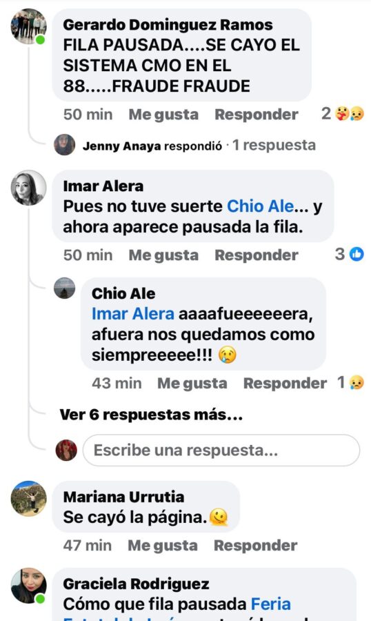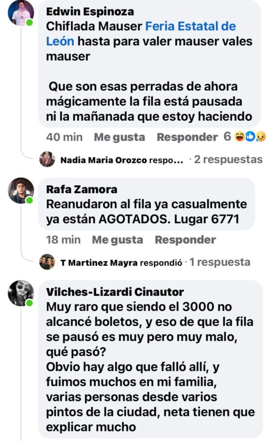 - “¿Cómo que fila pausada, Feria Estatal de León? Me tocó buen lugar y desde ayer su página tenía fallas”