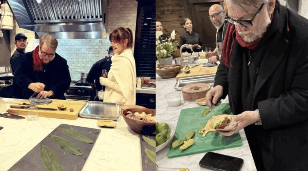 Lejos del glamour de las alfombras rojas, Del Toro fue captado preparando tacos y tortillas antes de tomar el micrófono para interpretar clásicos como “La Bamba” y “México Lindo y Querido” junto a un mariachi.