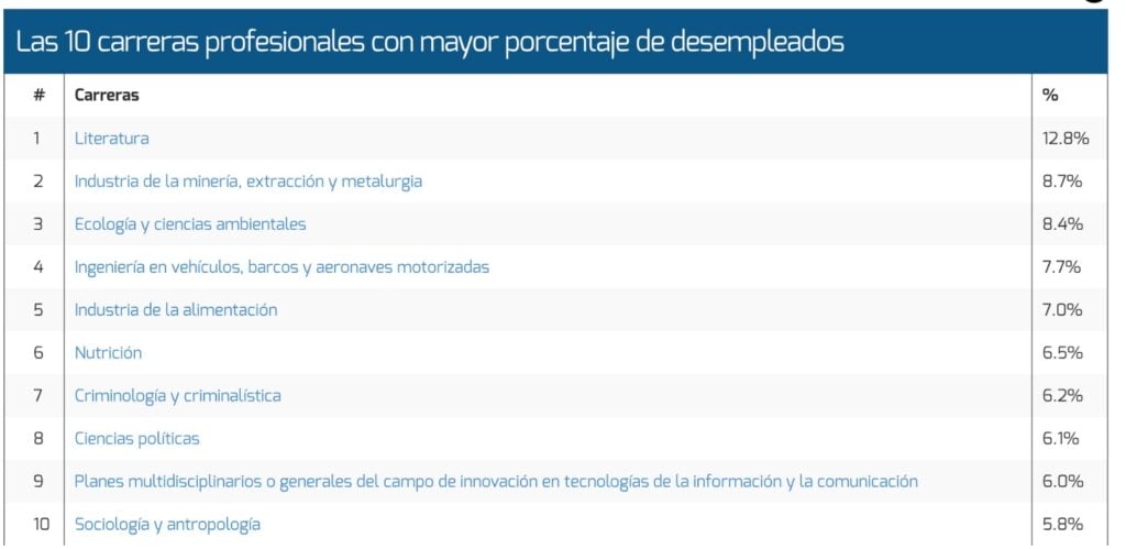 Durante la presentación de la herramienta Compara Carreras, que ofrece la oportunidad de conocer las profesiones más rentables, las de mayor demanda, las de mayor porcentaje de desempleados, peor pagadas y retorno de inversión, entre otros; revelaron que el 50% de los profesionistas en el país son egresados de 10 de las 118 carreras que se ofertan en las universidades públicas y privadas en México.Estas se han mantenido en la última década, pese a que el mercado laboral demanda otras habilidades y perfiles, expuso la directora del Imco, Valeria Moy.