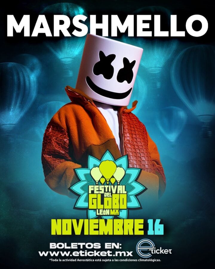 El mismo día estará también presente en el Parque Metropolitano de León el DJ y productor Marshmello, otro de los máximos exponentes de la música electrónica.