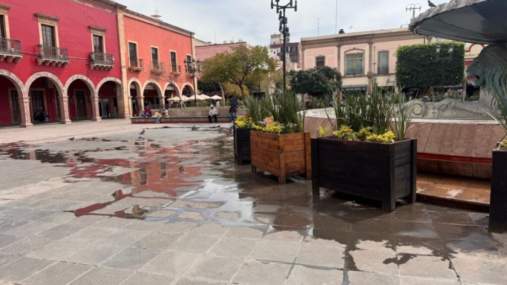 León, Guanajuato - Este viernes, la Dirección General de Obra Pública brindó atención a una fuga de agua presentada durante la mañana del 20 de febrero, en el sistema hidráulico de la emblemática Fuente de los Leones.