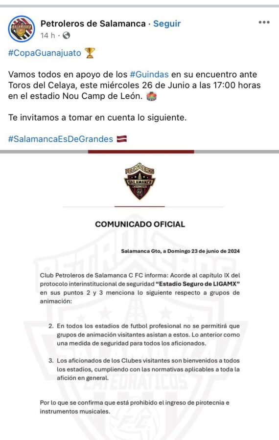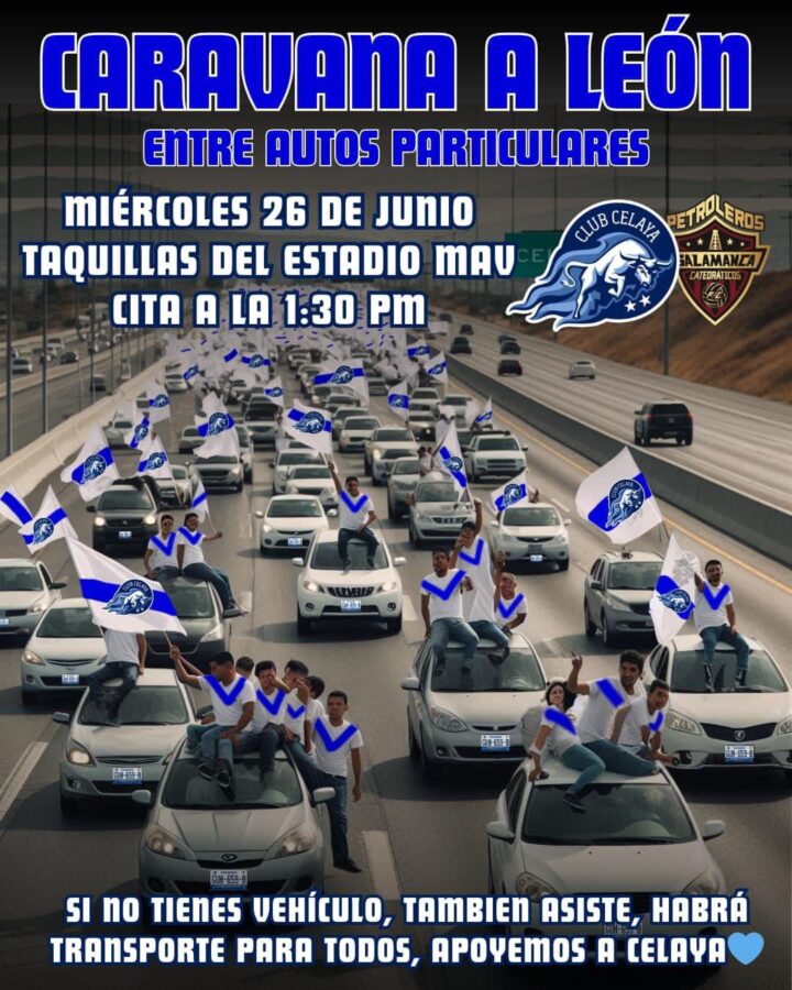 Sin embargo, desde Celaya la iniciativa de hacerse presente en León también retumbó con la intención de hacer una caravana desde las afueras del Estadio Miguel Alemán Valdés, saliendo a la 1:30 pm rumbo a la casa de La Fiera, donde sus Toros enfrentarán a Salamanca en el primer cotejo de la llave ante el equipo salmantino. Aunque con tintes más pacíficos, al parecer.