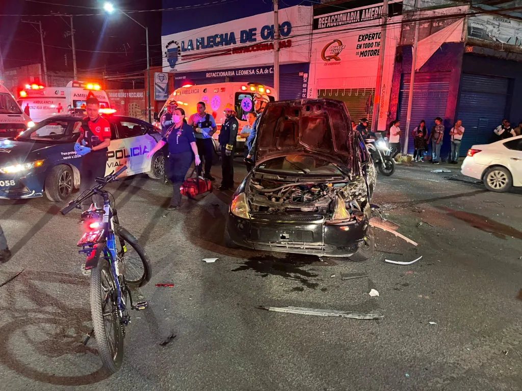 León, Guanajuato - Cinco lesionados fue el saldo de un fuerte accidente vehicular en la zona centro de la ciudad de León, además de una persona detenida.