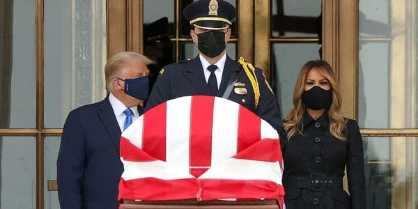 El presidente y su esposa Melania Trump, con mascarilla sanitaria, visitaron la sede del máximo tribunal e hicieron guardia de silencio junto al féretro durante apenas un minuto.