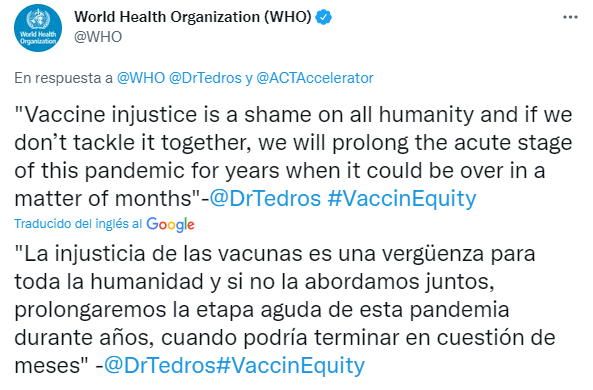 Incluso, la OMS aseguró que no hay datos concluyentes que indiquen que las terceras dosis son necesarias.