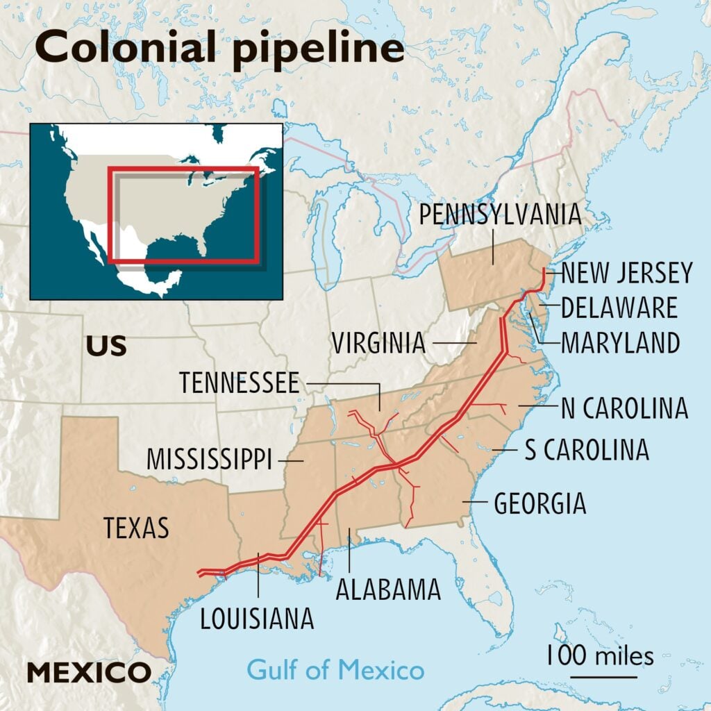 Un grupo de piratas informáticos organizados llamado 'DarkSide' hackeó y secuestró los sistemas de la compañía Colonial Pipeline Co., con lo que bloquearon el principal oleoducto del país que abastece hasta el 45% de toda la gasolina que se consume en la costa este de los Estados Unidos.