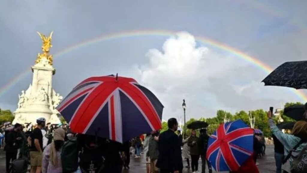 Cientos desafiaron la lluvia torrencial para pararse a las puertas del palacio después de que se anunciara que los médicos habían puesto a la monarca bajo supervisión médica en Balmoral, su propiedad escocesa.Algunos lloraron cuando arriaron la bandera Union Jack en la residencia de la reina en Londres, antes de que un silencio entumecido cayera sobre la multitud.