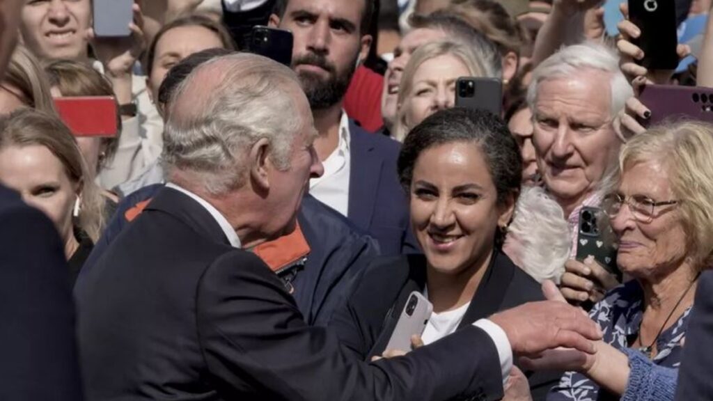 “God save the King” (Viva el rey), “God bless the Prince of Wales” (Dios bendiga al príncipe de Gales), gritó la multitud en el centro de Londres, mientras estrechaba las manos y conversaba con las nuevas cabezas visibles de una monarquía sin la longeva reina.
