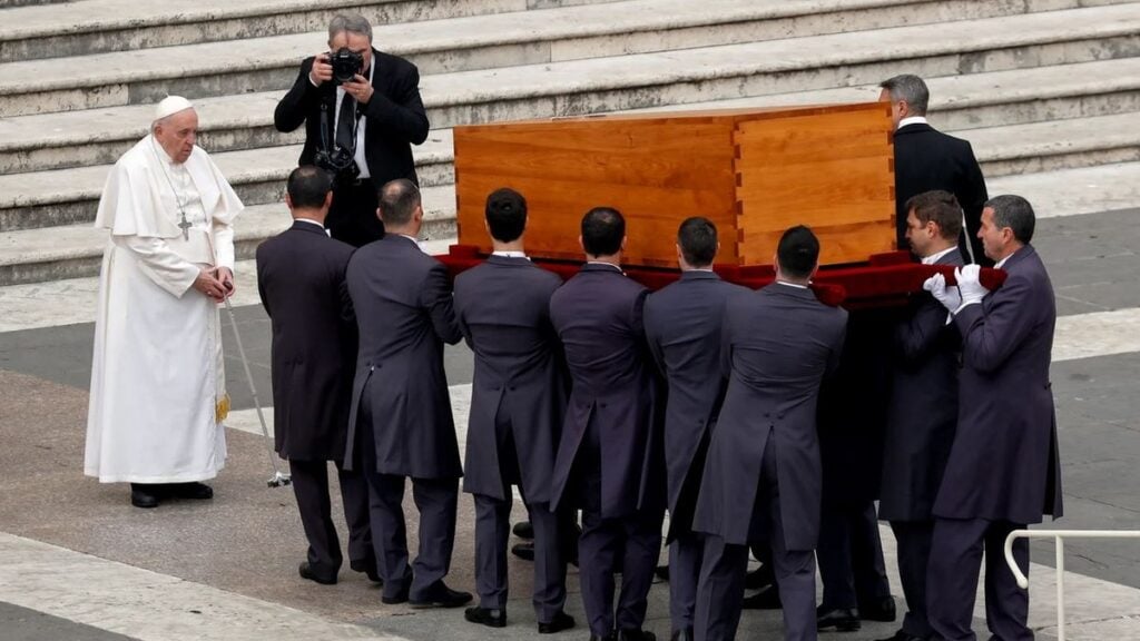 Este jueves, antes de ser enterrado en la tumba que perteneció a su admirado Juan Pablo II, el papa emérito Benedicto XVI, de quien Francisco destacó su “sabiduría” durante la misa de su funeral, fue despedido en una sobria ceremonia en la plaza de San Pedro del Vaticano ante unas 50 mil personas.