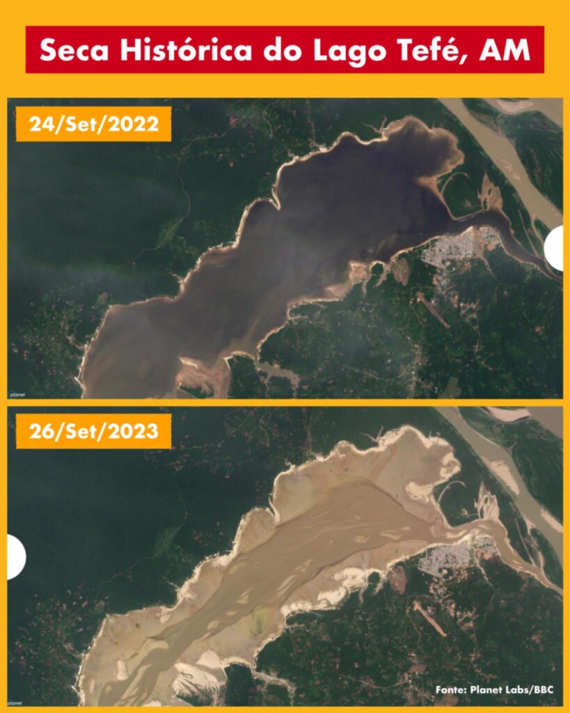 [caption id="attachment_170479" align="alignnone" width="819"] Imagen satelital de la extrema sequía en el lago Tefe. Foto: Especial[/caption]