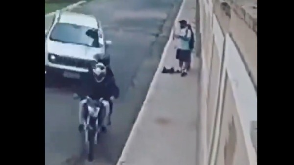 En el video, subido a través de una cuenta de X, se puede ver a dos hombres acercarse en una motocicleta a una pareja transeúnte con un arma para asaltarlos.