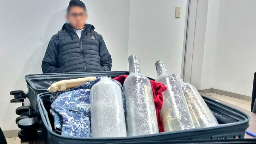 El detenido, que había salido de la Ciudad de México y realizado una escala en Panamá antes de intentar ingresar a Paraguay, llevaba en su maleta tres botellas de tequila y cuatro frascos de shampoo.