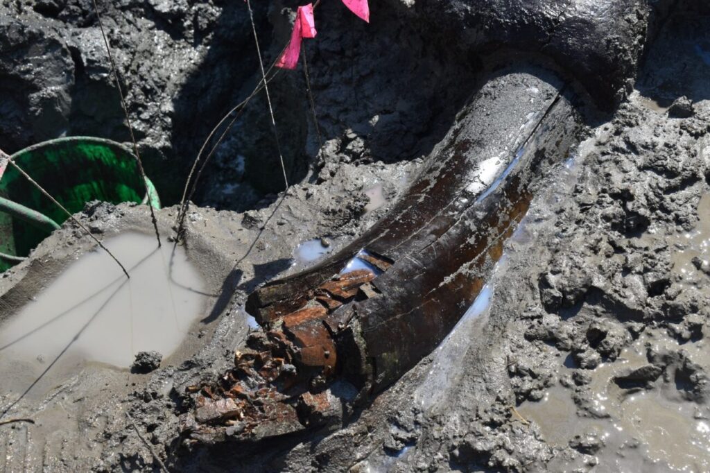 El fósil aún preservaba una notable sección de su colmillo curvado, de 60 centímetros, que los arqueólogos describieron como una verdadera "mina de oro".