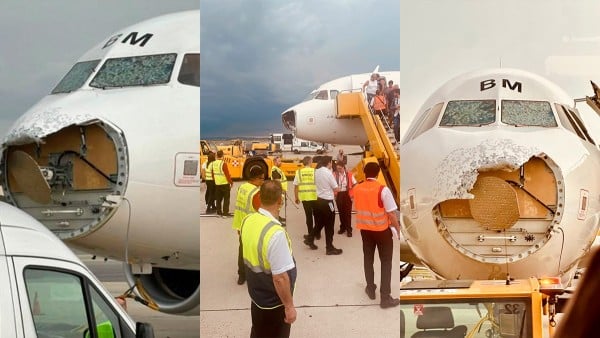 La fuerza del granizo fue tal que la trompa del avión quedó destruida, y en las imágenes difundidas por la prensa local se observa que parte de la estructura se desprendió, dejando al descubierto el interior de la nave. “Según las primeras informaciones, el granizo dañó las dos ventanillas delanteras de la cabina del avión, el morro del avión y algunos paneles”, agregó el portavoz de la aerolínea.