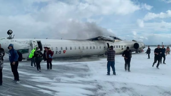 Un avión de Delta Airlines se estrelló y volcó este lunes en el Aeropuerto Internacional Pearson de Toronto, Canadá.