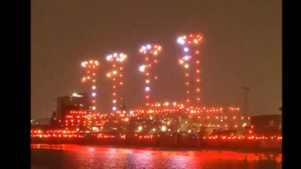 Esta exhibición, producida por la BBC, utilizó luces LED para dibujar la estructura tridimensional del buque en el aire.